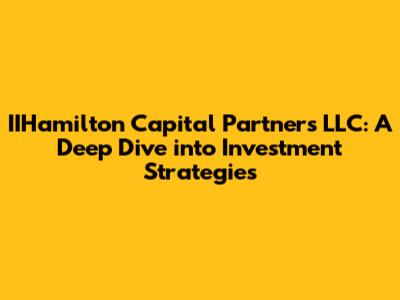 IIHamilton Capital Partners LLC: Unveiling Investment Strategies