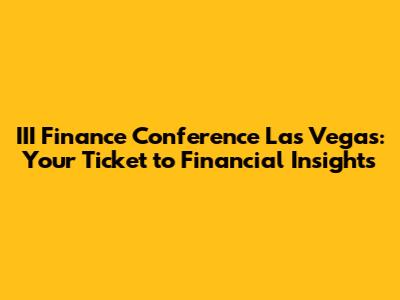 Hey guys! Are you ready to dive into the exciting world of finance? Let's talk about the III Finance Conference in the dazzling city of Las Vegas! If you're looking for a game-changing event to boost your financial knowledge, network with industry leaders, and discover the latest trends, then you've hit the jackpot. This isn't just another conference; it's a transformative experience designed to equip you with the tools and insights you need to thrive in today's dynamic financial landscape. So buckle up, because we're about to explore everything this incredible conference has to offer.
