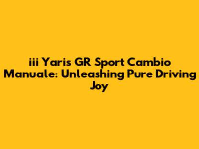 The iii Yaris GR Sport Cambio Manuale is more than just a car; it's an experience. It's a celebration of driving, a fusion of performance, design, and technology. If you're a driver who appreciates the art of the manual transmission, the thrill of a responsive chassis, and the head-turning aesthetics of a modern sports car, then this car is calling your name. Embrace the opportunity to connect with the road, feel the engine's power at your fingertips, and experience the pure joy of driving. The iii Yaris GR Sport Cambio Manuale is ready to take you on a journey. It's time to unleash the beast within and rediscover the thrill of driving. Go out there and experience the magic of the iii Yaris GR Sport Cambio Manuale. You won't regret it!