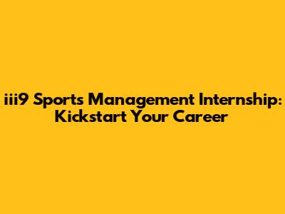 Iii9 Sports Management Internship: Kickstart Your Career