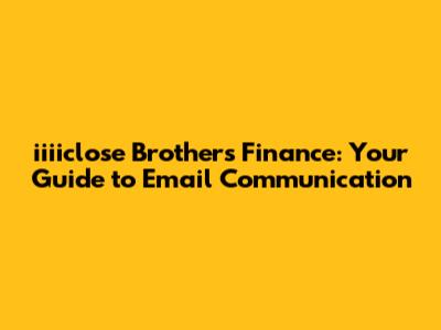 Iiiiclose Brothers Finance: Your Guide To Email Communication