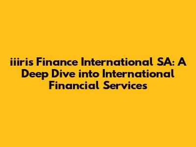 Hey everyone, let's dive into iiiris Finance International SA! This is gonna be a comprehensive look at the company, its services, and what makes it tick in the world of international finance. We'll break down everything from its core operations to its position in the market, so buckle up, guys, and let's get started!