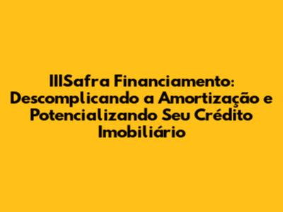 IIISafra Financiamento: Entenda Amortização E Otimize Seu Crédito