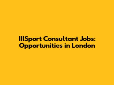 IIISport Consultant Jobs: Opportunities In London