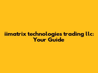 Iimatrix Technologies Trading Llc: Your Guide