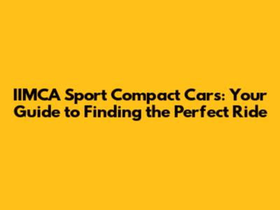IIMCA Sport Compact Cars: Your Guide To Finding The Perfect Ride