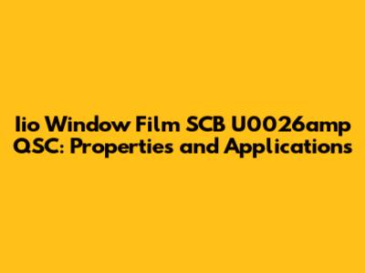 Iio Window Film SCB U0026amp QSC: Properties And Applications