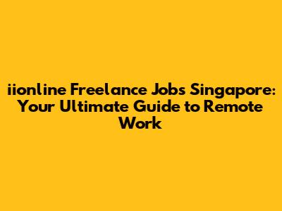 Iionline Freelance Jobs In Singapore: Your Gateway To Remote Work
