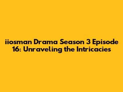 Iiosman Drama Season 3 Episode 16: A Rollercoaster Of Emotions