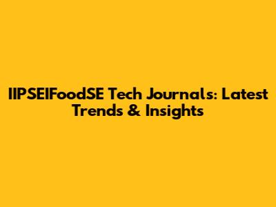 IIPSEIFoodSE Tech Journals: Latest Trends & Insights