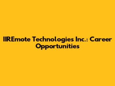 Are you seeking exciting career opportunities with IIREmote Technologies Inc.? If you're passionate about technology and eager to contribute to a dynamic and innovative environment, you've come to the right place. This article provides an in-depth look into IIREmote Technologies Inc., its culture, the types of career paths it offers, and how to navigate the application process successfully.