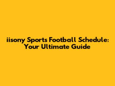 Iisony Sports Football Schedule: Your Ultimate Guide