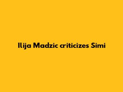 Ilija Madzic Criticizes Simi