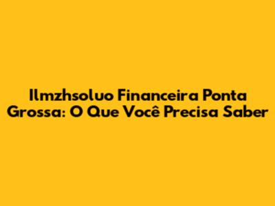 Ilmzhsoluo Financeira Ponta Grossa: O Que Você Precisa Saber