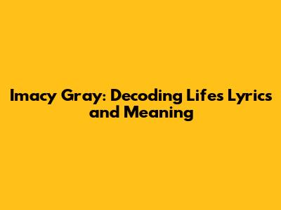 Imacy Gray: Decoding Life's Lyrics And Meaning