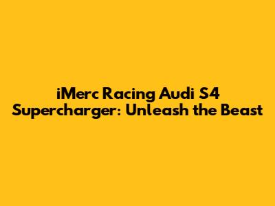 Hey gearheads! Ever dreamed of transforming your Audi S4 into a roaring, asphalt-devouring monster? Well, buckle up, because we're diving headfirst into the world of iMerc Racing Audi S4 superchargers. This isn't just about slapping on a new part; it's about a complete performance overhaul, a symphony of boosted power that'll leave your competitors in the dust. We're talking serious gains here, folks. Imagine the thrill of instant acceleration, the adrenaline rush as you hit the gas, and the envious glances from other drivers as you effortlessly overtake them. With an iMerc Racing supercharger, this dream becomes a reality. This article will be your ultimate guide to understanding this incredible upgrade, covering everything from the basics of supercharging to the nitty-gritty details of the iMerc Racing system, its installation, benefits, and how to maintain it, ensuring your Audi S4 performs at its absolute peak. So, let's get started and explore how the iMerc Racing Audi S4 supercharger can transform your driving experience into something truly unforgettable.