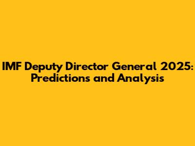 IMF Deputy Director General 2025: Predictions And Analysis