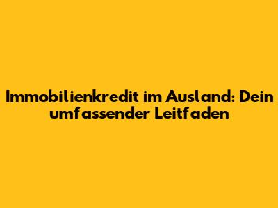 Immobilienkredit Im Ausland: Dein Umfassender Leitfaden