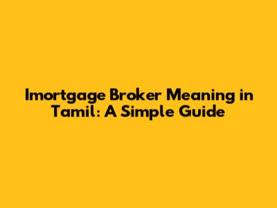 Imortgage Broker Meaning In Tamil: A Simple Guide