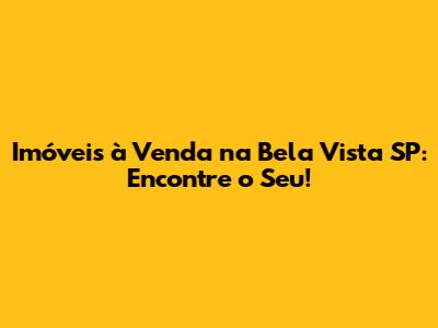 Imóveis À Venda Na Bela Vista SP: Encontre O Seu!