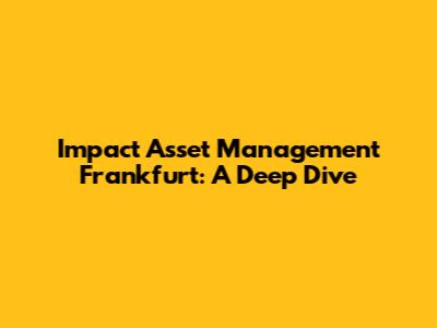 Hey guys! Ever wondered about the world of impact asset management? It's a pretty big deal, especially when you start looking at places like Frankfurt, Germany. This financial hub is buzzing with activity, and impact asset management is playing a starring role. In this article, we're diving deep into what makes Frankfurt a hotspot for this type of investing, how it's changing the game, and what you need to know to get in on the action. So, let's get started, shall we?