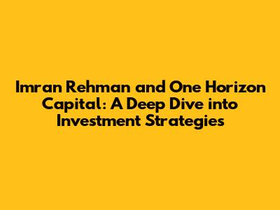 Imran Rehman & One Horizon Capital: Investing Insights