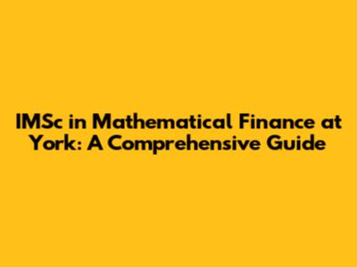 IMSc In Mathematical Finance At York: A Comprehensive Guide