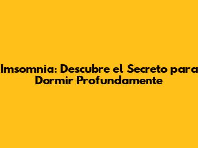 Imsomnia: Descubre El Secreto Para Dormir Profundamente