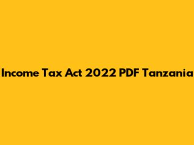 Income Tax Act 2022 Tanzania: Download PDF