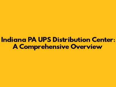 Indiana PA UPS Distribution Center: A Comprehensive Overview