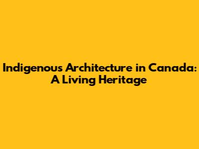 Indigenous Architecture In Canada: A Living Heritage