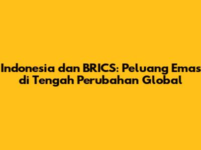 Indonesia Dan BRICS: Peluang Emas Di Tengah Perubahan Global