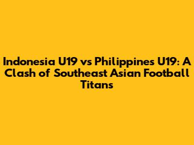 Hey guys! Get ready for a thrilling showdown as Indonesia U19 faces off against the Philippines U19! This match is more than just a game; it's a battle for pride, potential, and a spot in the future of Southeast Asian football. We're diving deep into everything you need to know: the teams, the key players, and, of course, our predictions. So, grab your snacks, settle in, and let's break down this exciting matchup. This game promises to be a great display of youthful talent and tactical prowess. Both teams are eager to make their mark on the international stage, making this encounter a must-watch for any football enthusiast. The atmosphere is sure to be electric, filled with passionate fans and a competitive spirit. Let's get started, shall we?