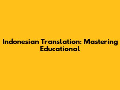 Indonesian Translation: Mastering 'Educational'