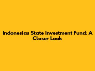 Indonesia's State Investment Fund: A Closer Look