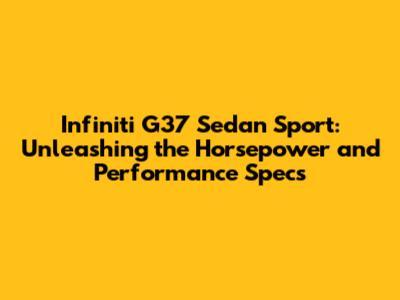 Hey guys! Let's dive deep into the exhilarating world of the Infiniti G37 Sedan Sport. If you're a car enthusiast, you've probably heard whispers about its impressive horsepower and overall performance. Well, today, we're tearing down the specs, features, and everything that makes this sports sedan a true icon. Whether you're considering buying one, already own one, or just love to drool over amazing cars, buckle up and get ready for a high-octane ride!