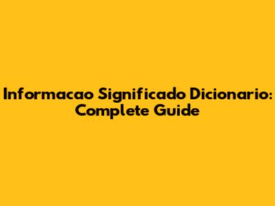 Informacao Significado Dicionario: Complete Guide