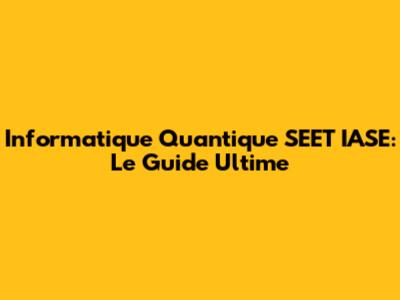 Informatique Quantique SEET IASE: Le Guide Ultime