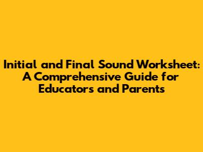 How to Use Initial and Final Sound Worksheets Effectively