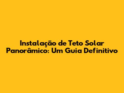 Instalação De Teto Solar Panorâmico: Guia Completo E Detalhado