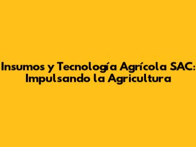 Insumos Y Tecnología Agrícola SAC: Impulsando La Agricultura