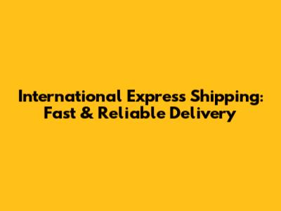 International Express Shipping: Fast & Reliable Delivery