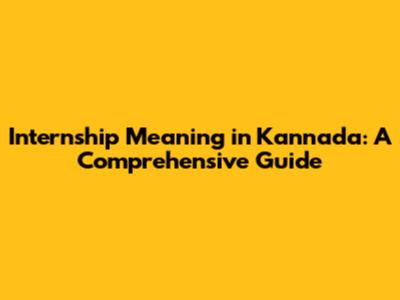 Internship Meaning In Kannada: A Complete Guide