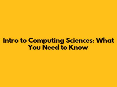 Intro To Computing Sciences: What You Need To Know