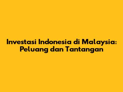 Investasi Indonesia Di Malaysia: Peluang & Tantangan