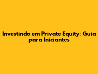 Investindo Em Private Equity: Guia Para Iniciantes