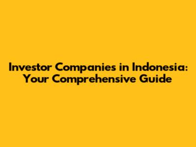 Investor Companies In Indonesia: A Comprehensive Guide
