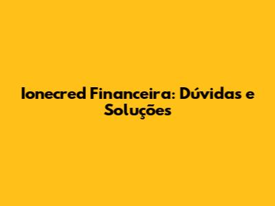 Ionecred Financeira: Dúvidas E Soluções