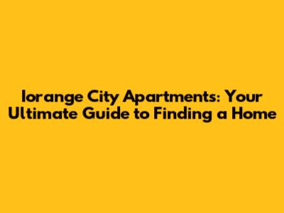 Iorange City Apartments: Your Guide To Finding A Home