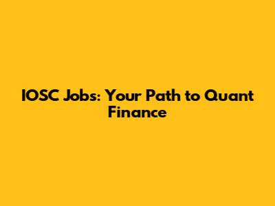 IOSC Jobs: Your Path To Quant Finance